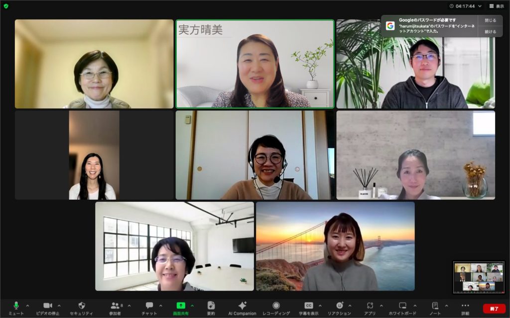オンラインのメリットは海外在住の方や日本全国から同時にレッスンに参加できますので、